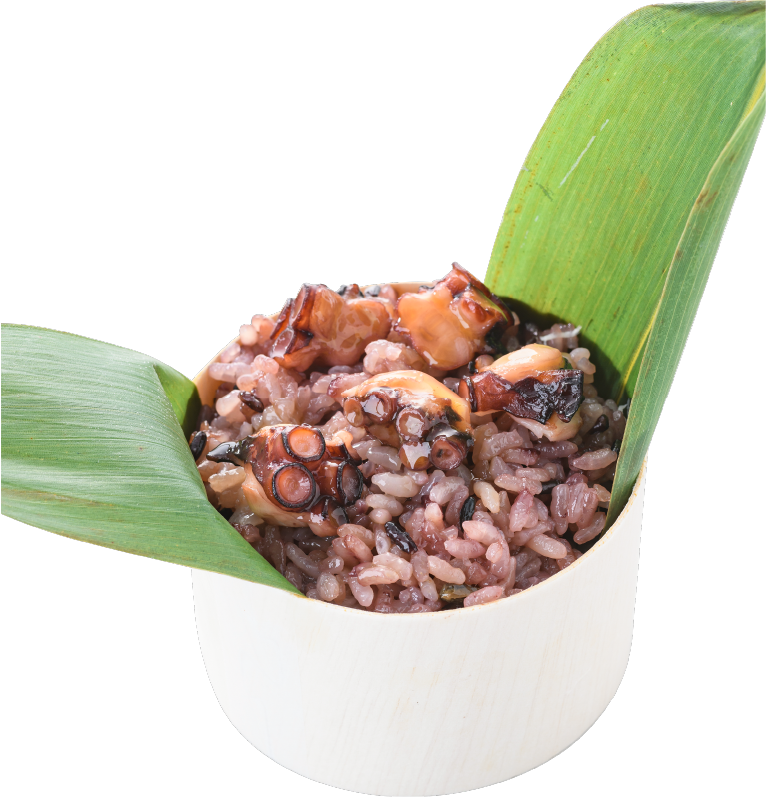 【冷凍商品】お米マイスターが厳選した新潟米と黒紫米をブレンドし、神奈川県佐島・長井沖で水揚げされた地タコで炊き上げた、紫に輝くタコメシです。島商の自信作、ぜひお試しください。